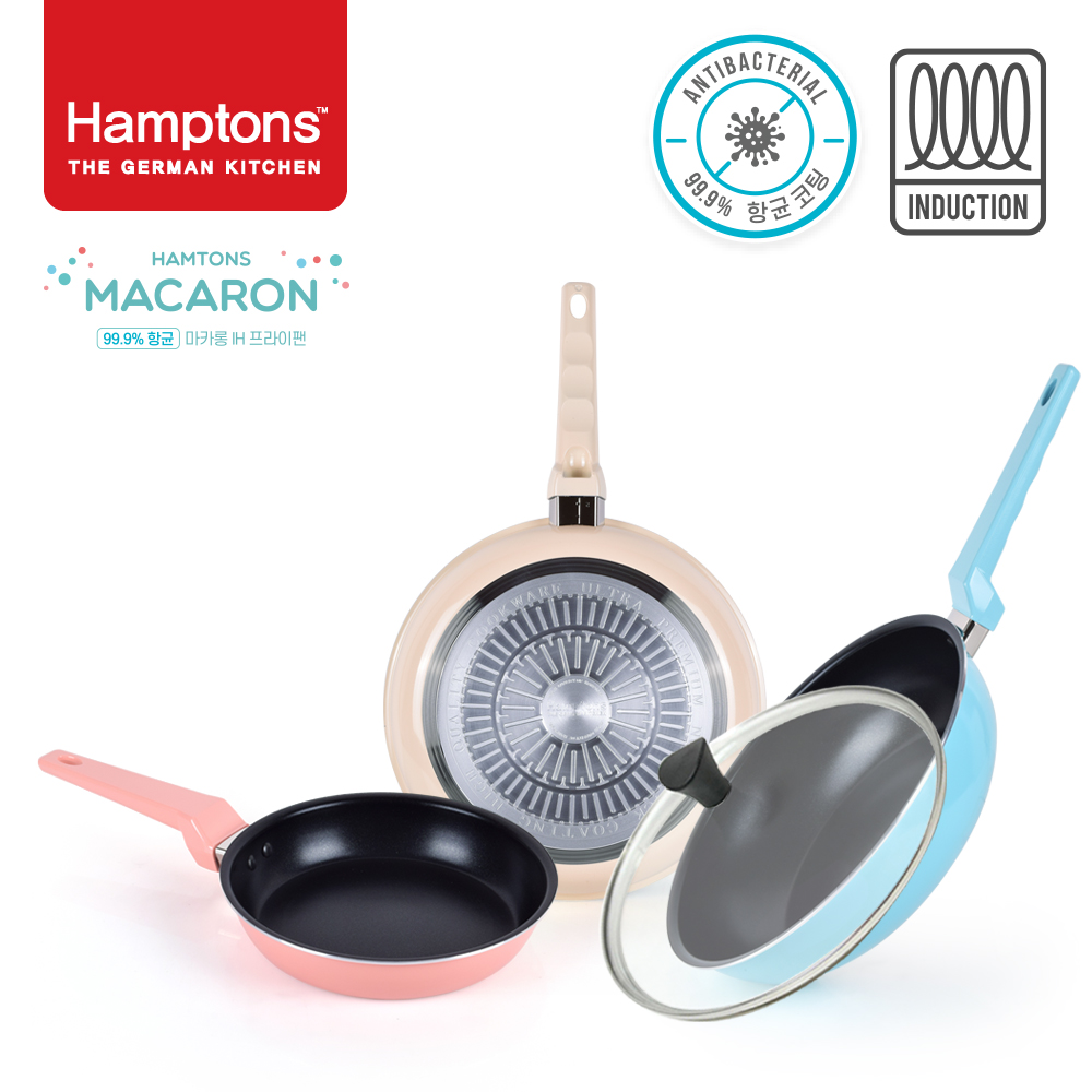 • [Hamptons]햄튼 99.9%항균 마카롱 IH 후라이팬 3종세트(4P) / HTMC-22F28F28W28G